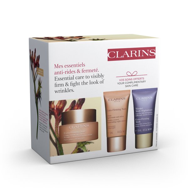 Le coffret soins fermeté des femmes qui veulent une peau visiblement plus jeune et raffermie : un masque qui réduit visiblement les rides et les signes de fatigue en seulement 10 minutes et deux crèmes anti-âge jour et nuit enrichies en extrait de fleur kangourou régénérant pour révéler la jeunesse du visage. Dès 40 ans. Ce coffret contient: Extra-Firming Jour Toutes peaux (50ml), Extra-Firming Nuit Toutes peaux (15ml), Masque Multi-Régénérant (15ml).