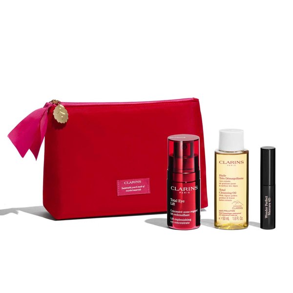 Ce coffret rassemble Total Eye Lift, le soin expert regard qui apporte un effet lift au regard en 60 secondes* chrono et redensifie la peau, Mascara Wonder Perfect 4D pour des cils XXL et l'Huile très démaquillante pour une peau parfaitement nette. *Pour 80% des femmes - test consommateur - 110 femmes. Ce coffret contient: Total Eye Lift (15ml), Huile Très Démaquillante (50ml), Mascara Wonder Perfect 4D (3ml) et une pochette.