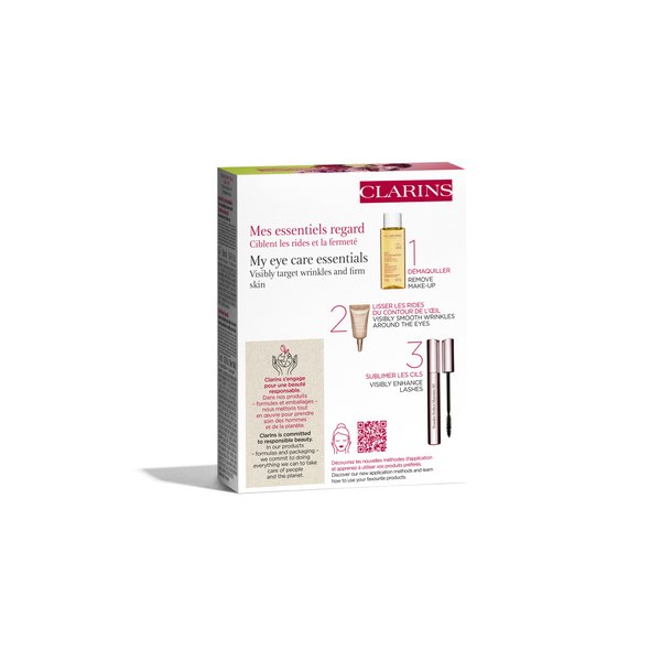 Ce coffret renferme tous les produits indispensables pour adoucir la zone fragile du contour de l'œil : une huile démaquillante douce pour les yeux mais rigoureuse contre le maquillage et les impuretés, un soin expert aussi lissant qu'un sérum, aussi nourrissant qu'un baume, enrichi en extraits biologiques de fleur de kangourou et de mitracarpus pour aider à raffermir la peau. Enfin, la touche finale est apportée par le mascara Wonder Perfect 4D, qui sublime et allonge les cils.