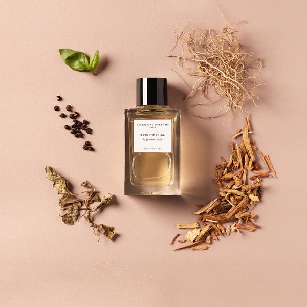 Les feuilles d'un basilic thaï épicé fraîchement écrasées rencontrent les facettes poivrées, pétillantes du pamplemousse et de l'absolu de poivre de Timut népalais. Une combinaison brillante qui contraste parfaitement avec la signature boisée audacieuse du parfum.