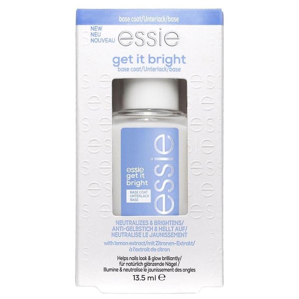 Vos ongles sont décolorés par les nombreux vernis ou la fumée de cigarette ? Remédiez à ce problème avec le get it bright de essie, une basecoat avec une formule éclaircissante qui donne à vos ongles une jolie teinte rose tendre et un blanc immaculé. Utilisez-le seul pour un éclat brillant ou utilisez votre couleur préférée par-dessus. Pas de soucis, Get It Bright empêche votre vernis de couleur de laisser des traces sur vos ongles.