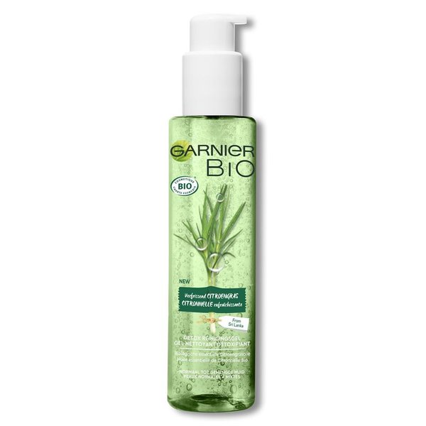 Garnier Bio a développé ce Gel nettoyant détoxifiant à la Citronnelle rafraîchissante pour prendre soin des peaux normales à mixtes. Ce gel nettoie et purifie votre peau en la débarrassant du sébum et des résidus de pollution sans la dessécher.