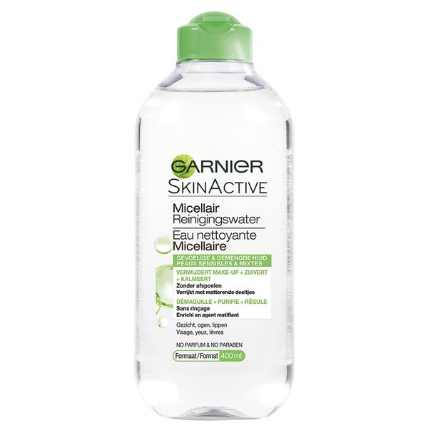 L'eau Nettoyante Micellaire démaquille, purifie et régule les excès de sébum en un seul geste et sans rinçage. Sa formule apaisante et sans parfum convient parfaitement aux peaux sensibles mixtes à grasses. L'Eau Micellaire de Garnier tient son nom de son ingrédient le plus important ; les Micelles. Les Micelles sont des actifs nettoyants qui agissent comme des aimants pour capturer le maquillage, les impuretés et le sébum présents sur la peau. Sans frotter et sans rinçage, l'Eau Micellaire démaquille et purifie en un seul geste. Le matin, elle nettoie et tonifie la peau pour un réveil en douceur. Le soir, elle démaquille, purifie des impuretés et de la pollution accumulée pendant la journée, et apaise. Un rituel beauté indispensable à renouveler quotidiennement!