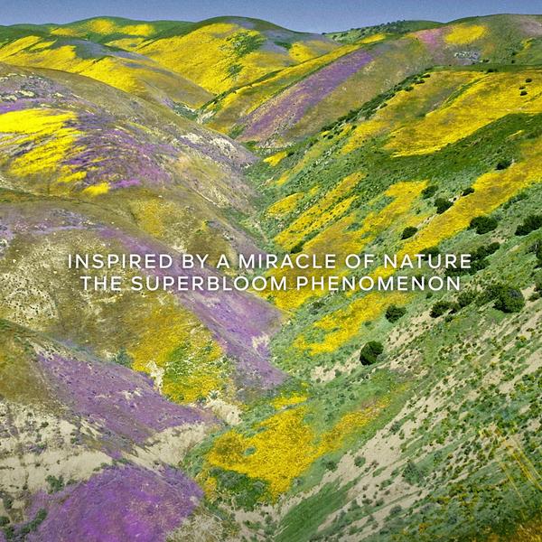 Découvrez Florabloom, l'explosion joyeuse d’un bouquet coloré comme un arc-en-ciel, illuminé en son cœur par une tubéreuse aussi vraie que nature. Autour de cette fleur blanche éblouissante, roses, accords iris et violettes se mêlent sur fond de mousse et révèlent des facettes solaires et onctueuses. Une création inspirée par le spectacle éblouissant des superfloraisons du désert, phénomène naturel rare qui par des pluies intenses, donne vie à un parterre de fleurs aux mille couleurs.