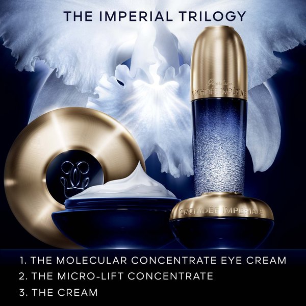 La Crème Yeux Concentré Moléculaire Orchidée Impériale est désormais disponible en recharge. Après 15 ans de recherche au sein de l’Orchidarium®, Guerlain révèle le secret de la longévité infinie pour le regard et présente une nouvelle génération de soin yeux hautement concentré. Le pouvoir régénérant à effet liftant d’un extraordinaire nouveau duo d’orchidées¹ est concentré dans le nouvel extrait moléculaire Orchid Totum Eye Liftᵀᴹ. Il est propulsé à la racine de la jeunesse de la peau par une technologie de pointe, la Nano-Concentrationᵀᴹ². Hautement régénéré, le regard parait visiblement lifté. Le contour des lèvres et les rides d’expression sont immédiatement lissés.