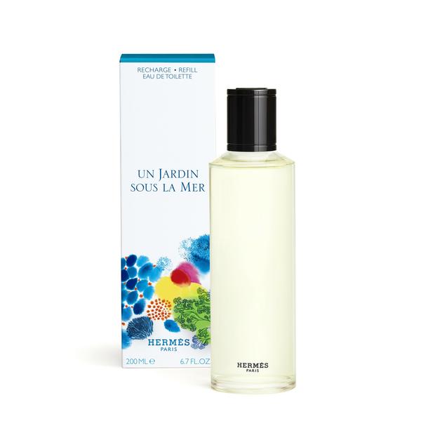 La recharge 200 ml d'eau de toilette Un Jardin sous la Mer permet de remplir les flacons 100 ml, 50 ml et 30 ml.