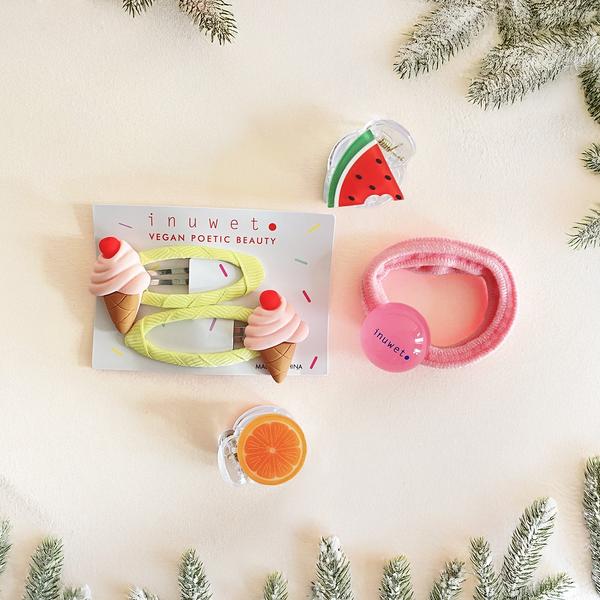 Gel douche donut: Aqua(water), cocamidopropyl betaine, isostearamide mipa, disodium cocoamphodiacetate, sodium chloride, sodium benzoate, glyceryl laurate, parfum(fragrance), citric acid, caprylhydroxamic acid, tetrasodium glutamate diacetate. Bain effervescent licorne: Sodium bicarbonate, citric acid, sodium sulfate, sodium carbonate, peg-400, parfum(fragrance), aqua(water), benzyl alcohol, vanillin, ci 17200(d&c red no. 33). Bain effervescent fraise: Sodium bicarbonate, citric acid, sodium sulfate, sodium carbonate, peg-400, parfum(fragrance), aqua(water), benzyl alcohol, vanillin, ci 19140(fd&c yellow no. 5), ci 42090(fd&c blue no. 1), ci 17200(d&c red no. 33), ci 14700(fd&c red no. 4). Sel de bain: Sodium chloride, glycerin, aqua(water), parfum(fragrance). Bain effervescent nuage: Sodium bicarbonate, citric acid, sodium sulfate, sodium carbonate, peg-400, parfum(fragrance), aqua(water), benzyl salicylate, hexamethylindanopyran. Crème mains vanille-coco: Aqua(water),cetearyl alcohol,butyrospermum parkii butter,glycerin,ethylhexyl palmitate,glyceryl stearate citrate,parfum(fragrance),coumarin,benzyl benzoate,palmitic acid,hydroxyacetophenone,stearic acid,isopropyl myristate,carbomer,theobroma cacao seed butter,tocopheryl acetate,ethylhexylglycerin,sodium hydroxide,tetrasodium glutamate diacetate,myristyl alcohol,arachidyl alcohol,lauric acid,myristic acid,arachidic acid. |