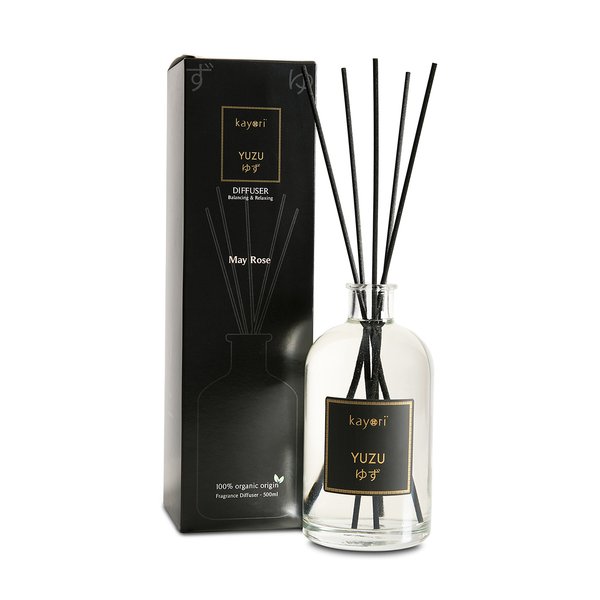 Yuzu est un parfum délicieux composé de notes de tête d'agrumes, de cerise, de freesia et de rose rouge. Le yuzu est un agrume japonais vieux de 1000 ans, également connu sous le nom de yuja. Selon la sagesse ancienne, le parfum du fruit du yuzu a un effet relaxant et combat le stress. Le fruit du yuzu est également réputé stimuler la circulation sanguine et être bon pour le cœur. Le diffuseur de parfum Kayori est fabriqué en verre de cristal et est terminé par un capuchon doré à travers lequel dépassent les bâtonnets noirs. Le diffuseur est livré dans un bel emballage, idéal comme cadeau pour vous-même ou pour un être cher. La capacité de 500 ml garantit pas moins d'un an de plaisir olfactif.