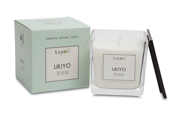 Ukiyo est un parfum relaxant et agréable qui consiste en une combinaison de thé blanc, avec un peu de citron. Le parfum contient également du jasmin et une toute petite touche de rose. Une pincée de bois de cèdre et de canne à sucre écrasée complète le parfum. Cette bougie carrée parfumée Kayori a une mèche, est fabriquée en verre de cristal et est terminée par un magnifique couvercle en bois de bambou qui vous permet d'éteindre et de fermer la bougie. La bougie parfumée est présentée dans une belle boîte cadeau, idéale pour vous-même ou pour un être cher. La bougie parfumée contient pas moins de 191 grammes de cire de soja, soit 40 heures de plaisir olfactif.