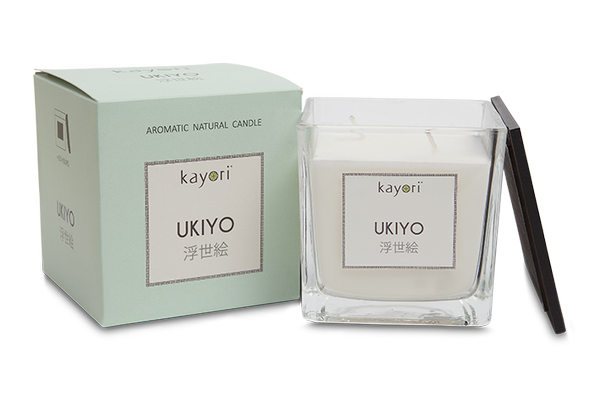 Ukiyo est un parfum relaxant et agréable qui consiste en une combinaison de thé blanc, avec un peu de citron. Le parfum contient également du jasmin et une toute petite touche de rose. Le parfum est complété par une pincée de bois de cèdre et de canne à sucre écrasée. Cette grande bougie carrée parfumée Kayori a deux mèches, de sorte que la bougie brûle uniformément. La bougie est fabriquée en verre de cristal et est dotée d’un magnifique couvercle en bois de bambou qui vous permet d'éteindre et de fermer la bougie. La bougie parfumée est présentée dans un magnifique emballage, idéal pour vous ou pour offrir à un être cher. La bougie parfumée contient pas moins de 430 grammes de cire de soja, ce qui permet d'obtenir 60 heures de plaisir olfactif.