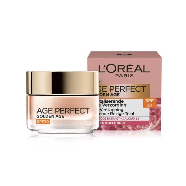 Enrichi en Néo-Calcium aux propriétés fortifiantes, la crème de jour SPF 20 Age Perfect Golden Age de L'Oréal Paris redonne matière et densité à la peau. Grâce à l'extrait de Pivoine Impériale associé à la Fleur d'Iris, ce soin redonne sa couleur naturelle à la peau et ravive progressivement son éclat et son teint rosé. De plus, l'indice SPF 20 qui protège la peau contre les rayons UV.
