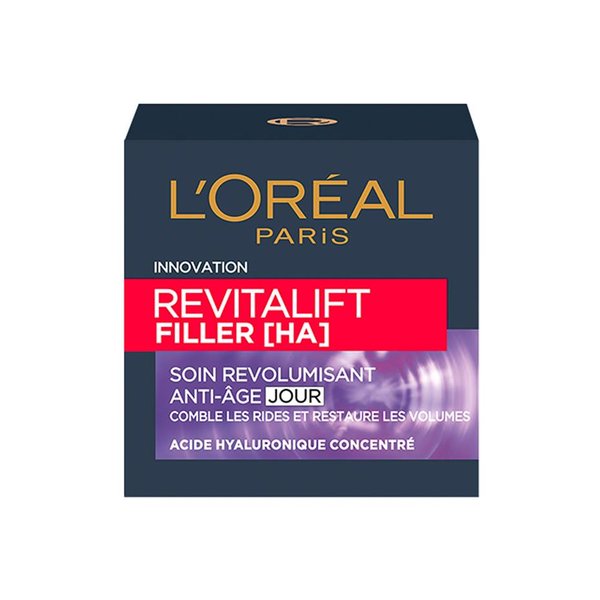 Ce qui trahit votre âge ? Ce ne sont pas seulement les rides mais aussi la perte de volume au niveau des joues et des pommettes. Avec la crème de jour Revitalift Filler de L'Oréal Paris, redonnez du volume à votre visage. Elle contient une haute concentration d'acide hyaluronique pour repulper la peau et combler les rides. Sa formule exclusive revolumise progressivement la peau. Elle est adaptée aux personnes dès 40 ans en quête d'un soin anti-rides avancé et revolumisant.