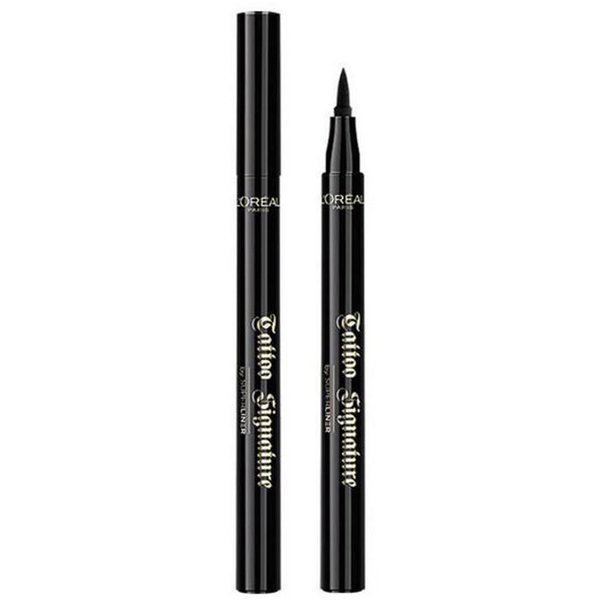 Le Superliner Tattoo Signature est l'alliance parfaite entre une pointe feutre haute précision et une formule waterproof enrichie en pigments noirs. Une application ultra-facile : en un seul geste, le liner glisse sur la paupière pour dessiner un trait effet tatouage net, ultra-fin et plus noir que noir.
