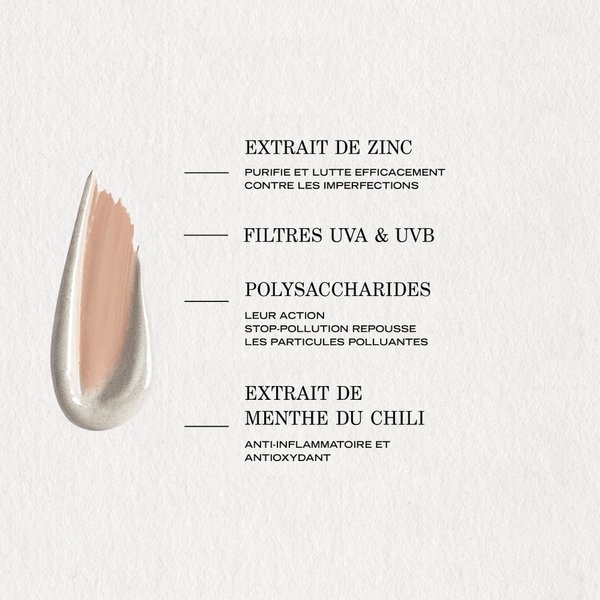 Une crème caméléon à base de poudre de bambou et de pigments encapsulés. Elle camouffle les imperfections, purifie et matifie tout en protégeant la peau de la pollution et des UV. Le teint est unifié et matifié, la peau plus nette et lumineuse.