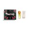 Ce collage, illuminé par le noir profond du coffret fait écho à l’intensité de l’Eau du Soir.
