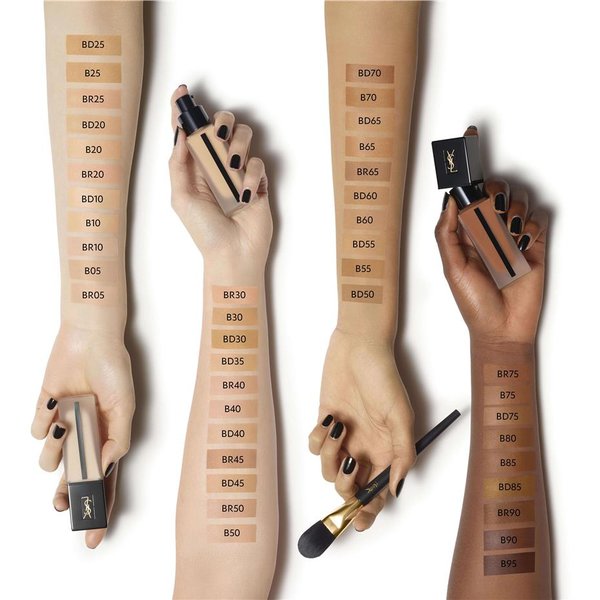 Préparez-vous à des jours et des nuits sans fin avec Encre de Peau All Hours, le 1er fond de teint couvrant tenue jour et nuit Yves Saint Laurent Beauté. Assurez le jour, vivez la nuit avec un teint mat sans défaut jusqu'au petit matin ! 24 heures de tenue sans compromis : sans retouche et sans transfert, ce fond de teint longue tenue résiste à l'eau et à la chaleur tout en restant confortable même au cours d'une journée intense. Haute couvrance sans effet masque : une forte concentration de pigments à la fois fins et souples permet une couvrance parfaite et uniforme toujours naturelle. Matité contrôlée longue durée : cette formule non grasse assure un teint frais sans brillance et réduit l'apparence des pores tout au long de la journée. Protection contre les agressions extérieures : grâce à son indice de protection solaire et son complexe soin, ce fond de teint actif garde la peau fraîche et lisse. Convient à tous les types de peaux, même les plus sensibles. Testé sous contrôle dermatologique - Non comédogène.