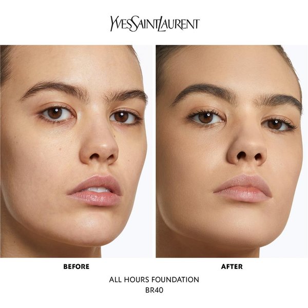 Préparez-vous à des jours et des nuits sans fin avec Encre de Peau All Hours, le 1er fond de teint couvrant tenue jour et nuit Yves Saint Laurent Beauté. Assurez le jour, vivez la nuit avec un teint mat sans défaut jusqu'au petit matin ! 24 heures de tenue sans compromis : sans retouche et sans transfert, ce fond de teint longue tenue résiste à l'eau et à la chaleur tout en restant confortable même au cours d'une journée intense. Haute couvrance sans effet masque : une forte concentration de pigments à la fois fins et souples permet une couvrance parfaite et uniforme toujours naturelle. Matité contrôlée longue durée : cette formule non grasse assure un teint frais sans brillance et réduit l'apparence des pores tout au long de la journée. Protection contre les agressions extérieures : grâce à son indice de protection solaire et son complexe soin, ce fond de teint actif garde la peau fraîche et lisse. Convient à tous les types de peaux, même les plus sensibles. Testé sous contrôle dermatologique - Non comédogène.