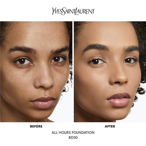Préparez-vous à des jours et des nuits sans fin avec Encre de Peau All Hours, le 1er fond de teint couvrant tenue jour et nuit Yves Saint Laurent Beauté. Assurez le jour, vivez la nuit avec un teint mat sans défaut jusqu'au petit matin ! 24 heures de tenue sans compromis : sans retouche et sans transfert, ce fond de teint longue tenue résiste à l'eau et à la chaleur tout en restant confortable même au cours d'une journée intense. Haute couvrance sans effet masque : une forte concentration de pigments à la fois fins et souples permet une couvrance parfaite et uniforme toujours naturelle. Matité contrôlée longue durée : cette formule non grasse assure un teint frais sans brillance et réduit l'apparence des pores tout au long de la journée. Protection contre les agressions extérieures : grâce à son indice de protection solaire et son complexe soin, ce fond de teint actif garde la peau fraîche et lisse. Convient à tous les types de peaux, même les plus sensibles. Testé sous contrôle dermatologique - Non comédogène.