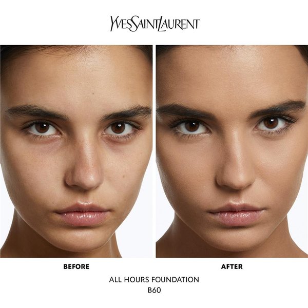 Préparez-vous à des jours et des nuits sans fin avec Encre de Peau All Hours, le 1er fond de teint couvrant tenue jour et nuit Yves Saint Laurent Beauté. Assurez le jour, vivez la nuit avec un teint mat sans défaut jusqu'au petit matin ! 24 heures de tenue sans compromis : sans retouche et sans transfert, ce fond de teint longue tenue résiste à l'eau et à la chaleur tout en restant confortable même au cours d'une journée intense. Haute couvrance sans effet masque : une forte concentration de pigments à la fois fins et souples permet une couvrance parfaite et uniforme toujours naturelle. Matité contrôlée longue durée : cette formule non grasse assure un teint frais sans brillance et réduit l'apparence des pores tout au long de la journée. Protection contre les agressions extérieures : grâce à son indice de protection solaire et son complexe soin, ce fond de teint actif garde la peau fraîche et lisse. Convient à tous les types de peaux, même les plus sensibles. Testé sous contrôle dermatologique - Non comédogène.