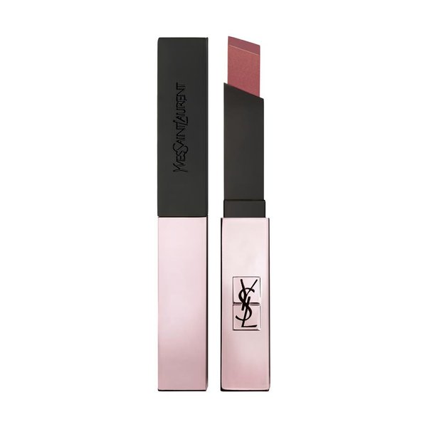 Rouge Pur Couture The Slim Glow Matte, rouge à lèvres mat lumineux par Yves Saint Laurent Beauté, offre un fini mat tout en étant lumineux avec un fini moyen et léger sur les lèvres.