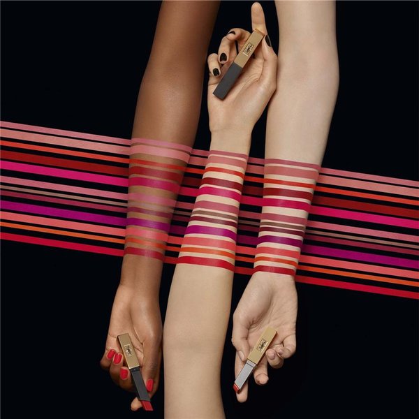 ROUGE PUR COUTURE THE SLIM par Yves Saint Laurent Beauté, le nouveau rouge à lèvres qui habille vos lèvres d'un fini cuir mat.